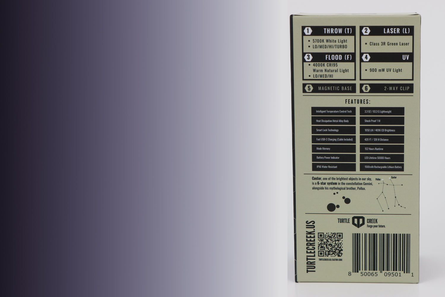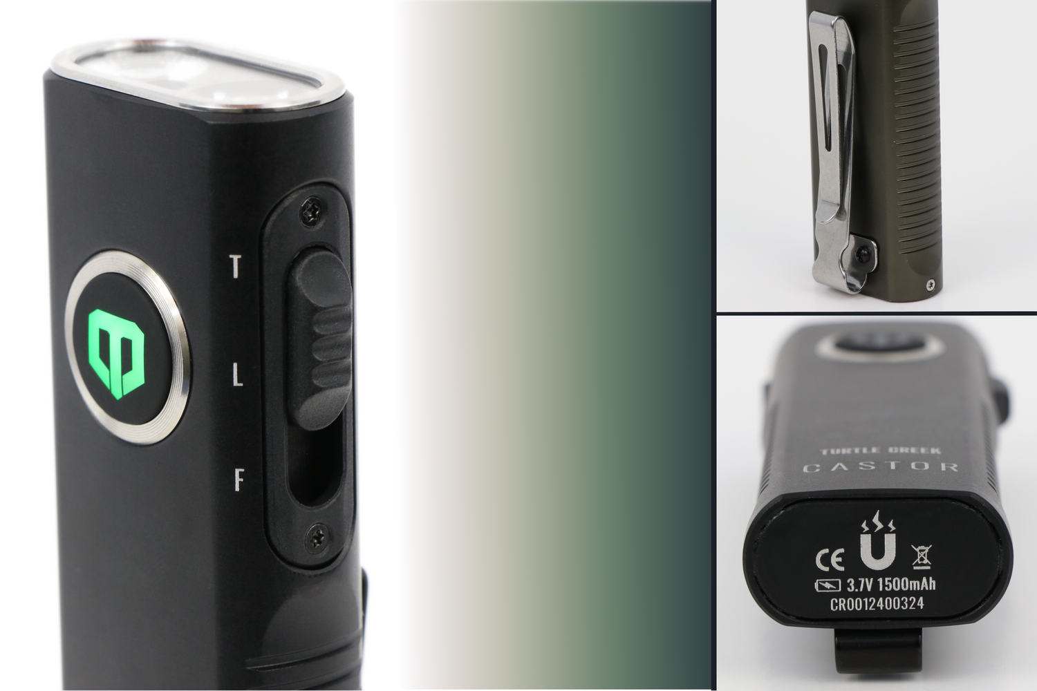 Whether you need a powerful beam, an angled flood light for work, UV detection, or a precise laser pointer, the Castor flashlight is your ultimate tool for any task, snapping and sticking and clipping wherever you need.